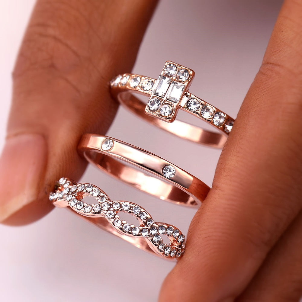 Super Forfait sur Notre Ensemble de Bagues Fait d'Alliage de Zinc Plaquer d'or Rosé avec Anneaux Infinis ,Zircons Cubique en Cristal Brillant qui s'agence Très Bien les 3 Ensemble, Peut Importe dans Quel Ordre Vous les Porter.